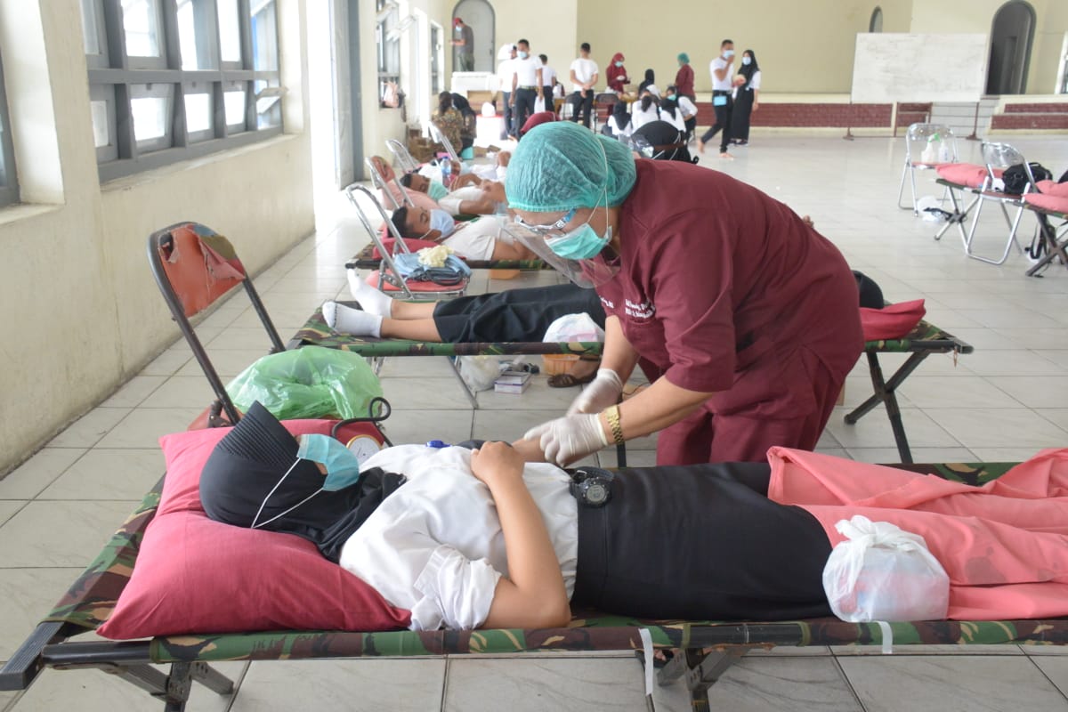 BELAWAN-Untuk menanggulangi stock darah yang berkurang dan mulai menipis di saat pandemi Covid-19 di kantor Palang Merah Indonesia (PMI) kota Medan, Pangkalan Utama TNI AL (Lantamal) I Belawan melaksanakan donor darah melalui para calon-calon prajurit TNI AL pria dan wanita di Markas Komando Lantamal I Belawan Jalan Serma Hanafiah no.1 Belawan hari Jumat (23/10/2020)