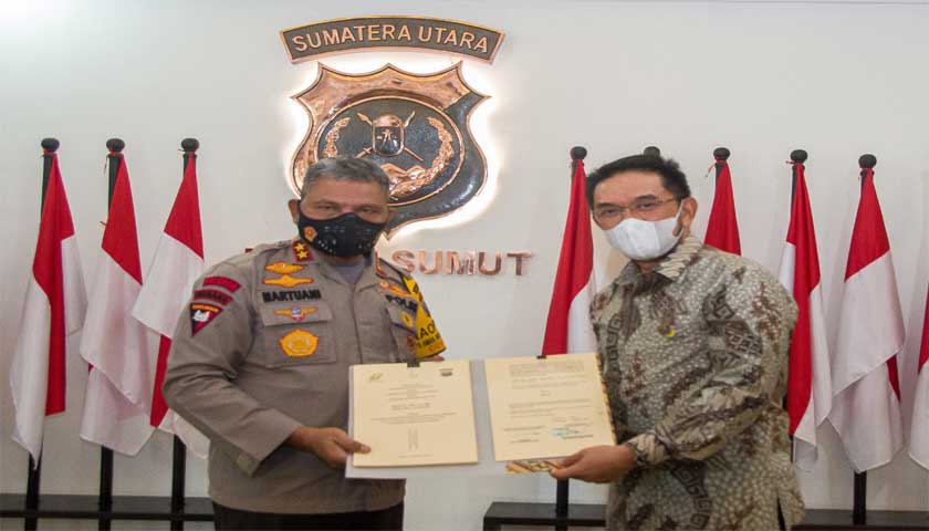 SUMUT – SEVP Business Support PTPN III (Persero), Suhendri dan Kapolda Sumatera Utara, Irjen Pol Martuani Sormin menandatangani Nota Kesepahaman tentang Bantuan Pengamanan dan Pemeliharaan Keamanan serta Ketertiban di lingkungan wilayah kerja PTPN IIII (Persero) serta pedoman kerja pelaksanaan Nota Kesepahaman antara PTPN III (Persero) dan Polda Sumut, Kamis (22/10/2020).