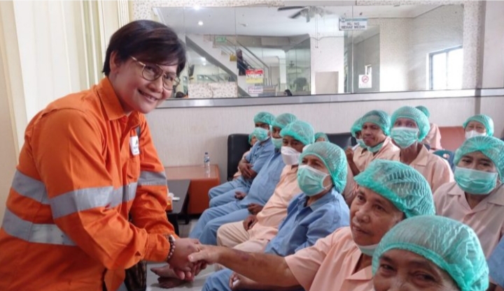 Seraya menghampiri para pasien katarak, Katarina juga menjelaskan bahwa pihak perusahaan tidak hanya menjangkau 15 desa terdampak tambang saja yang diberikan CSR namun target keseluruhan untuk memperluas jangkauan wilayah perusahaan di Sumut.