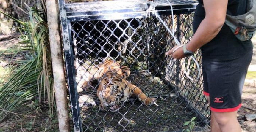 Tertangkapnya Si Raja Rimba ini, setelah pihak BKSDA bekerjasama dengan warga membuat perangkap dari besi. Seekor kambing pun menjadi umpan untuk perangkap tersebut.