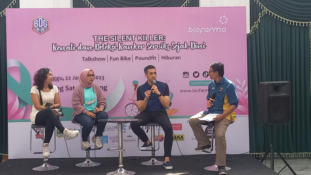 Sementara itu, Bio Farma juga mensosialisasikan bahaya kanker serviks dengan menggelar talkshow yang mengangkat tema “The Silent Killer: Kenali dan Deteksi Kanker Serviks yang diawali dengan Funbike dengan titik keberangkatan di Bio Farma Bandung menuju Gedung Sate,yang langsung dilepas oleh Direktur Hubungan Kelembagaan Bio Farma, Sri Harsi Teteki.