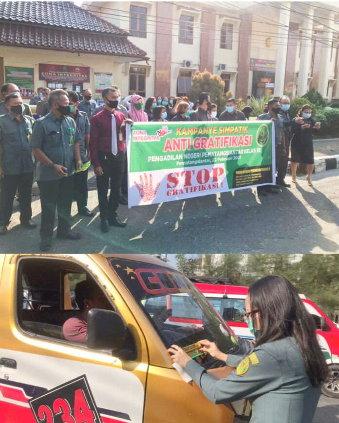 Giat Kampanye Simpatik Anti Gratifikasi ditandai dengan membagikan stiker kepada masyarakat pengendara. Kegiatan tersebut merupakan salah satu wujud nyata pelayanan PN Siantar kepada publik, sebagi bentuk dukungan menuju Zona Integritas (ZI) menuju WBK/WBBM tahun 2021.