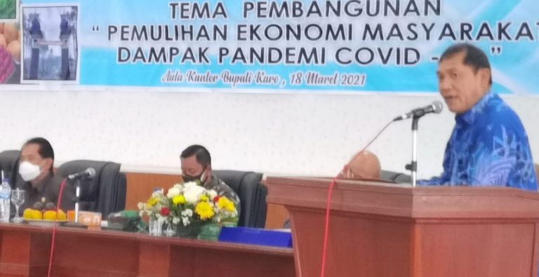 Bupati Karo mengungkapkan hal itu dalam sambutannya pada pembukaan Musrenbang RKPD 2022, Kamis (18/3/2021), di Kabanjahe. Hadir staf ahli Gubsu Dr Ir Binsar Situmorang MSi MAP, Dandim 0205/TK Letkol Kav Yuli Eko Hadyanto. Wakil Ketua DPRD Karo Sedarta Bukit, perwakilan Kajari Manatap Sinaga, akademisi Universitas Qualiti Sumbul Depari. Dinas vertikal BPPJN, Kepala BPS, Direktur BI (Bank Indonesia), dan para OPD Karo.