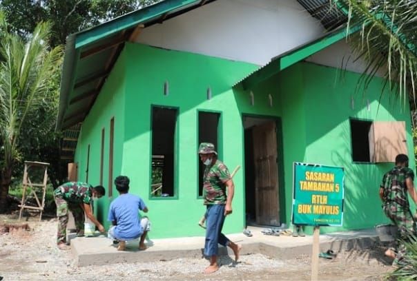 Rasa senang terlihat dari wajah lbu Mayulis (53) salah satu penerima bantuan bedah rumah tidak layak huni program TMMD ke 110 TA.2021