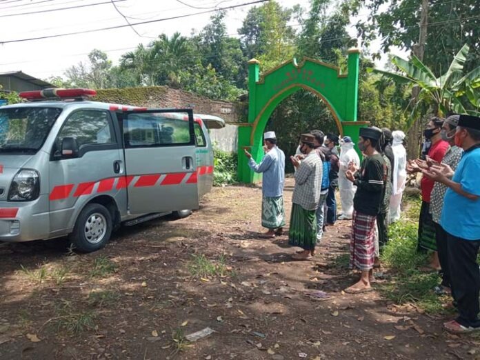 BATANG – realitasonline.id | Seorang pasien yang meninggal karena Covid 19 disholatkan dipinggir Jalan Raya Plelen Gringsing Batang.
