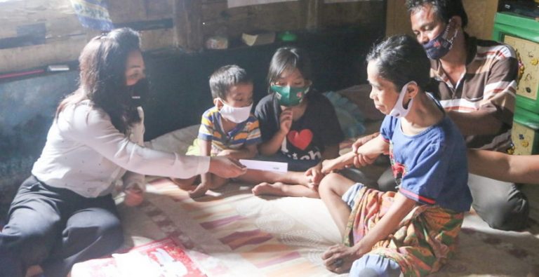 Di desa tersebut, rombongan yang juga didampingi Kepala Desa Henri Sitompul memberikan tali asih kepada empat warga penderita lumpuh, penderita gangguan jiwa dan disabilitas.