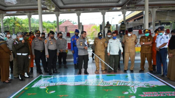 Latihan ini digelar di Lapangan Simaremare Kota Sibolga, Selasa (23/3/2021). Tujuannya untuk menyamakan persepsi dan kesiapsiagaan personel mengantisipasi bencana alam di Kota Sibolga khususnya di masa pandemi Covid-19.
