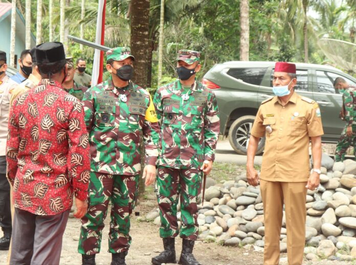 BIREUEN – realitasonline.id l Tim Pengawas dan Evaluasi ( Wasev) Markas Besar Angkatan Darat (Mabesad) meninjau pelaksanaan kegiatan TNI Manunggal Membangun Desa (TMMD) Reguler ke-110 Kodim 0111/ Bireuen, di Desa Alue Limeng, Kecamatan Jeumpa, Kabupaten Bireuen, Selasa (23/03/2021)