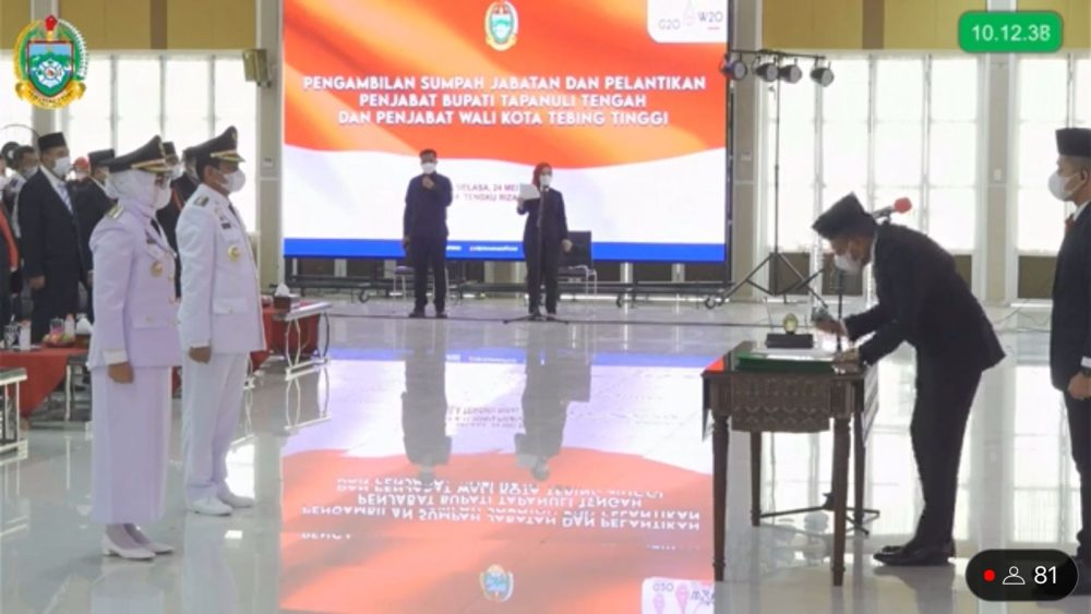 Pelantikan atau sumpah jabatan dua nama yang dilantik yaitu Muhammad Dimiyathi sebagai Pj Wali Kota Tebing Tinggi dan Yetty Sembiring berdasarkan surat Menteri Dalam Negeri nomor 131/2686/SJ tertanggal 20 Mei 2022. Turut hadir seluruh unsur Forkopimda kabupaten Tapanuli Tengah dan Kota Tebing Tinggi.