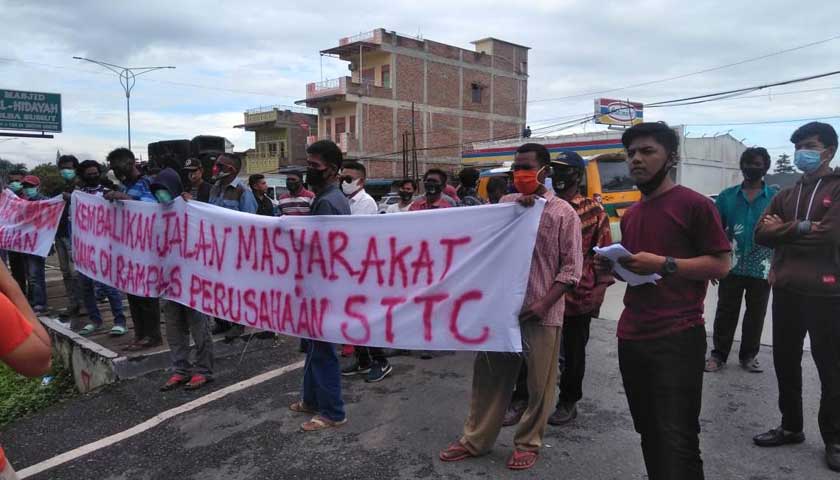 Koordinator aksi, Soleh Nasution menyebutkan, pihak PT. STTC telah menyerobot tanah seluas 13. 431 m² yang berada pada Kelurahan Belawan Barahi yang selama ini menjadi fasilitas umum.