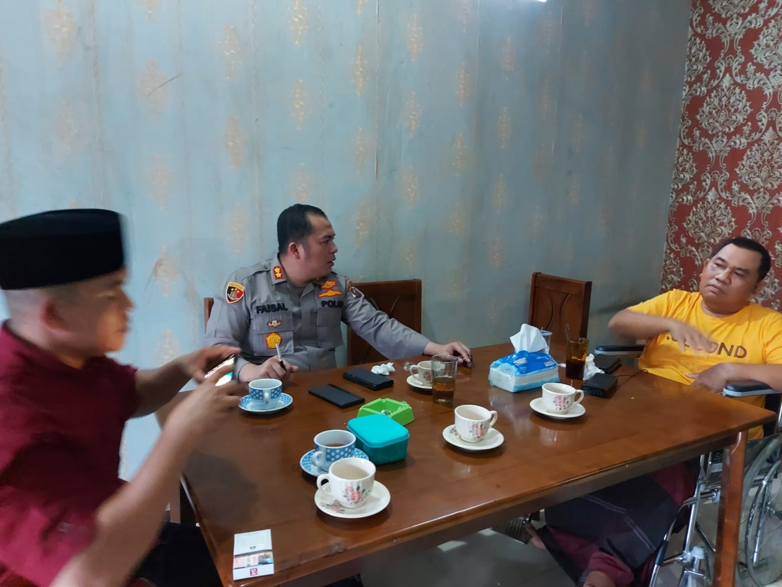POSKOTASUMATERA.COM-MEDAN-Usai dibesuk Wakil Walikota Medan H Aulia Rahman SE, Rabu (23/11/2022) Ketua Umum Komunitas Sedekah Jumat (KSJ) Saharuddin dikunjungi Kapolres Belawan AKBP H Faisal Rahmat SH MH bersamaan dengan kunjungan politisi senior Partai Persatuan Pembangunan (PPP) Fadly Nurzal.