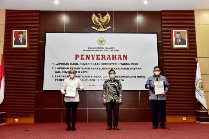 Hal itu disampaikannya pada acara yang digelar di Gedung BPK RI Perwakilan Sumut di Jalan Imam Bonjol Medan, Rabu (23/12). Turut hadir di antaranya Ketua DPRD Sumut Baskami Ginting, Bupati/Walikota atau yang mewakili, Pimpinan DPRD kabupaten/kota, serta sejumlah pejabat lainnya.