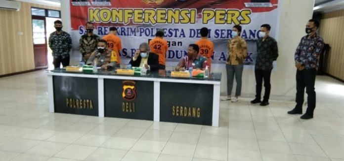 “Pada April 2020 sekira pukul 20.00 WIB, korban diajak pelaku ke areal pekuburan Kristen di Desa Nagarejo Kecamatan Galang, dan di tempat itu I dan LAT sudah menunggu dan bergantian menyetubuhi korban,” papar Kompol M Firdaus, Kasat Reskrim Polresta Deli Serdang didampingi AKP Alexander Piliang, Wakasat Reskrim, Kasubbag Humas AKP Ansari SH, Kanit PPA Dhoory Vineyara Sigiro, Jumat (22/1/2021).