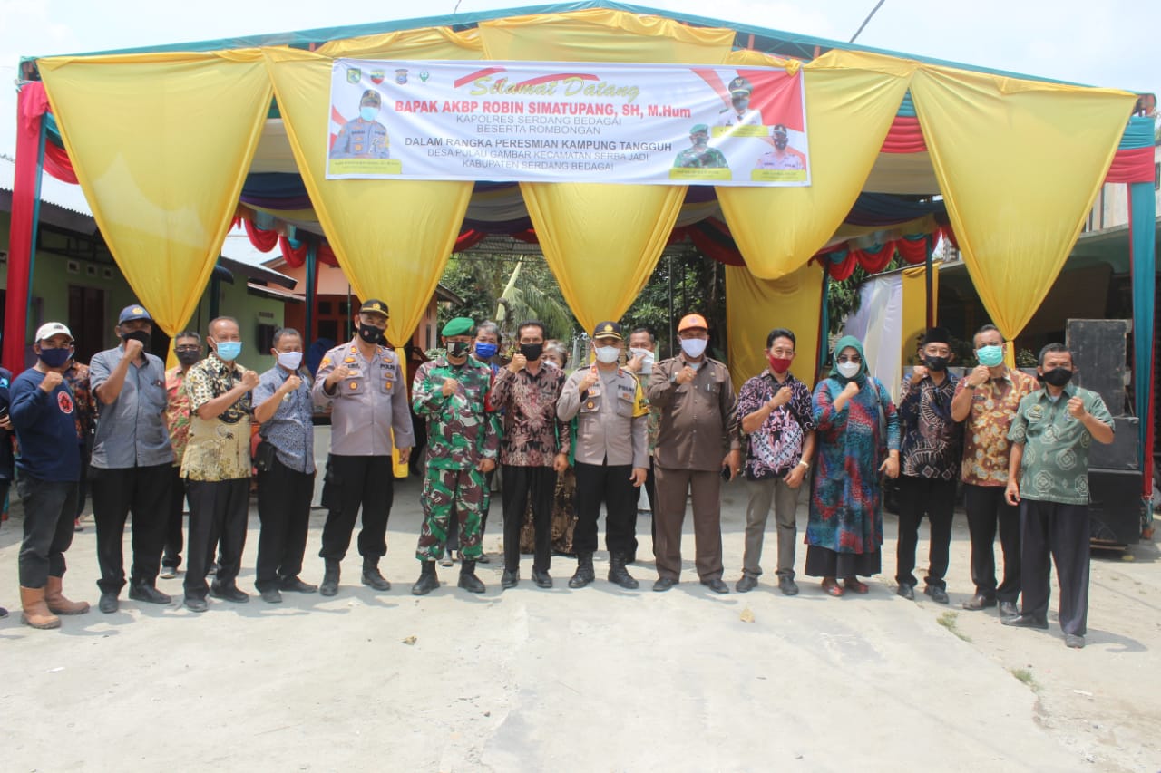 SERDANG BEDAGAI, teritorial24.com – Kapolres Sergai AKBP Robin Simatupang diwakili Wakapolres Kompol Sofyan meresmikan Kampung Tangguh di Desa Pulau Gambar, Kecamatan Serba Jadi, Kabupaten Serdang Bedagai,Kamis (25/2).