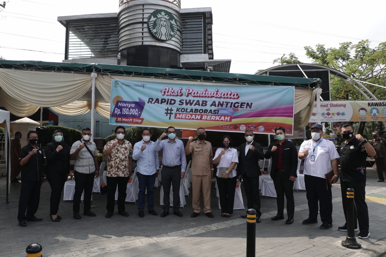 Aksi Pariwisata Rapid Swab Antigen yang merupakan kerjasama dengan Asosiasi Pariwisata dan Azizzi Clinic Medical Group ini. Dibuka oleh Plh Wali Kota Medan Ir Wiriya Alrahman MM diwakili Asisten Umum Renward Parapat. Hadir dalam kegiatan tersebut, Kadis Pariwisata Kota Medan Agus Suryono, Ketua PHRI Sumut, Deni Eswardana, Dirut Azizi Klinik Medical Group, Dr Agam Riyadh, Ketua ASPPI Sumut, Echi dan Ketua IHGMA, Zulham serta Pelaku industri Pariwisata Kota Medan.
