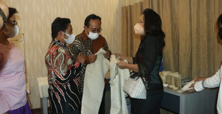 TAPANULI UTARA – Buka Bimtek IKM Tenun Ulos, Ketua Dekranasda Tapanuli Utara Satika Simamora SE MM. Didampingi oleh Kadis Perindustrian dan Perdagangan Gibson Siregar dan Kadis Koperasi dan UKM Herly Sinaga. Membuka Bimbingan Teknis Industri Kecil Menengah (IKM) Tenun Ulos yang diselenggarakan oleh Kementerian Perindustrian dan Perdagangan, bertempat di Aula Hotel GNB Muara, Rabu (23/6/2021).