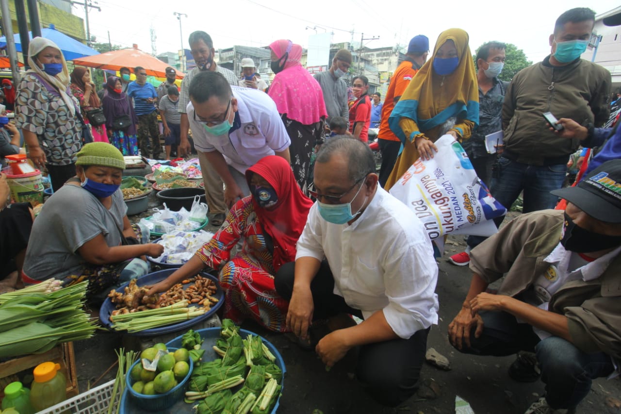 MEDAN-Calon Walikota Medan nomor 1, Akhyar Nasution mengunjungi Pasar Sukaramai, Minggu (25/10/2020) pagi. Dalam pertemuan itu, para ibu-ibu pedagang mengeluhkan tingginya tarif BPJS Kesehatan dan bantuan Program Keluarga Harapan (PKH) yang dibagikan tak tepat sasaran.