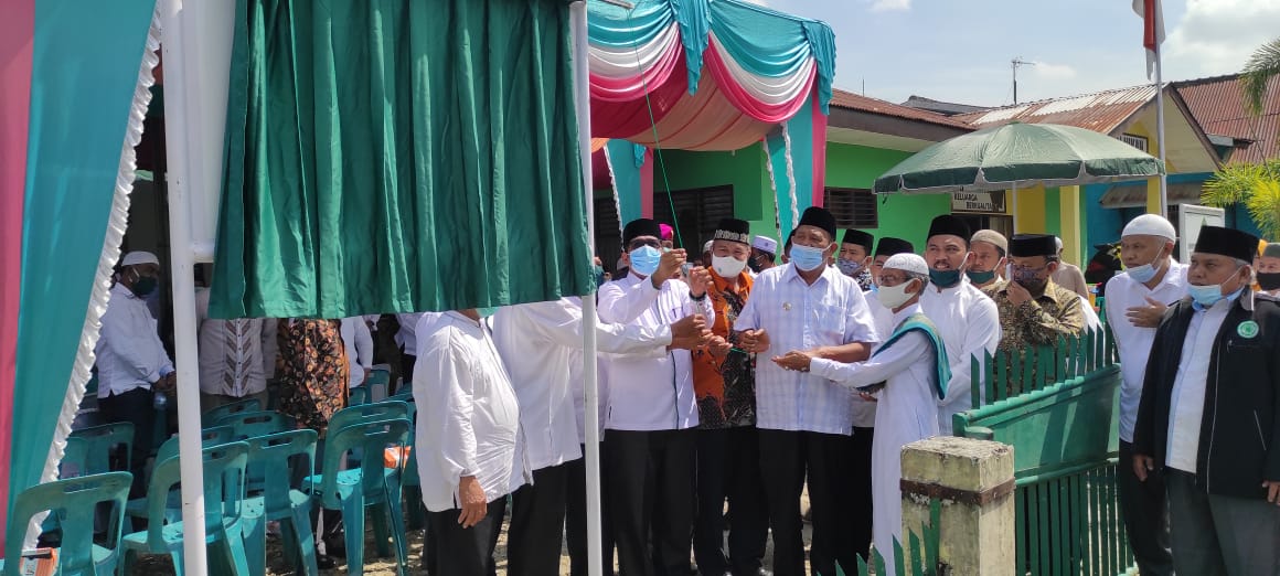 Peresmiaanya dilakukan Bupati Langkat Terbit Rencana PA melalui Wakilnya H Syah Afandin, ditandai pemotongan tali pita dengan mengucapkan bismillah, Kamis (24/12/20).