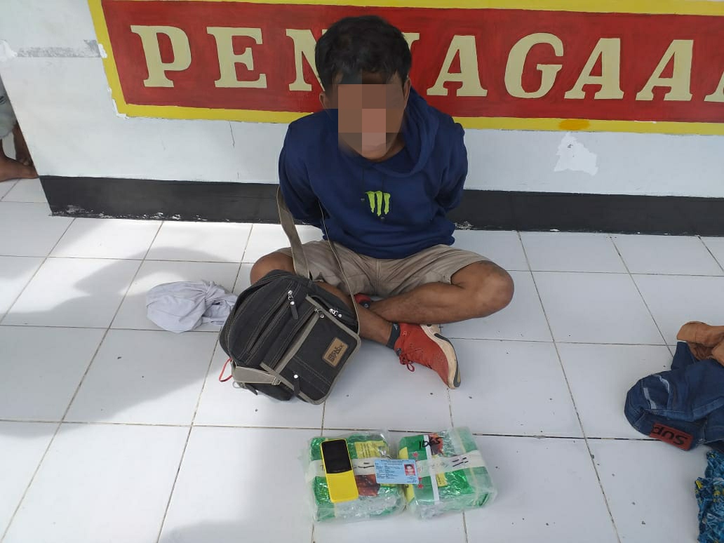 BELAWAN – realitasonline.id | Pos TNI AL Muntok dan KSOP dibantu Personel Patroli Keamanan Laut Menumbing mengamankan salah seorang penumpang yang berusaha menyelundupkan Narkoba jenis Sabu-sabu seberat 2 Kg melalui kapal KMP Menumbing Raya di Pelabuhan Tanjung Kalian Muntok, Bangka Belitung, Rabu (24/12/20).