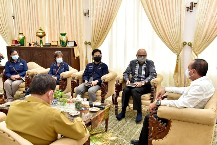 Usai pertemuan, Kepala BPS Sumut Syech Suhaimi memberikan piagam penghargaan dalam rangka mendukung Sensus Penduduk (SP) 2020 di Sumut. Sekaligus juga menyerahkan laporan hasil sensus 2020. (AL)