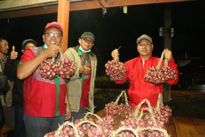 Hal itu disampaikannya saat melihat hasil panen bawang merah Varietas Batu Ijo Kelompok Tani Parbagotan Simpang Tiga, Desa Hutaginjang, Kecamatan Muara yang dibudidayakan Osten Ompusunggu , Senin malam (25/1) 2021.