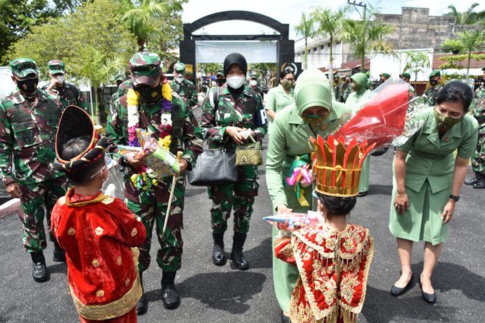 Kedatangan Pangdam disambut oleh Danrem 023/KS Kolonel Inf Febriel Buyung Sikumbang didampingi Ketua Persit KCK Koorcab Rem 023 PD I/BB.