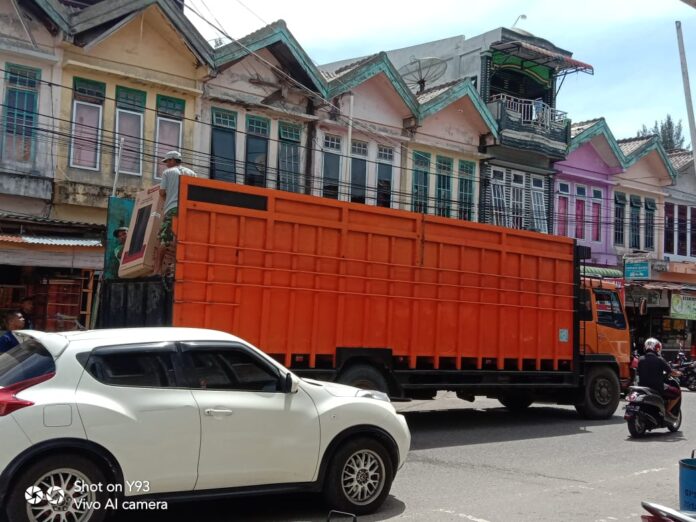 Hal tersebut terjadi Senin (25/1/2021) pengemudi Dan Truck melakukan bongkaran muat di dalam kota Tapaktuan, pengemudi lainnya terpaksa kelabakan untuk mencari jalan.