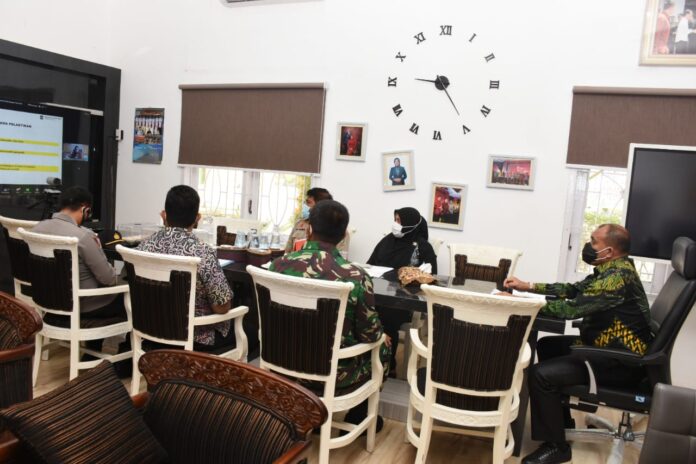Plh Bupati menyampaikan jika koordinasi virtual hari ini beragendakan mekanisme pelaksanaan pelantikan Bupati dan Wakil Bupati/Walikota dan Wakil Walikota terpilih yang rencananya akan dilaksanakan Jumat (26/3/2021).