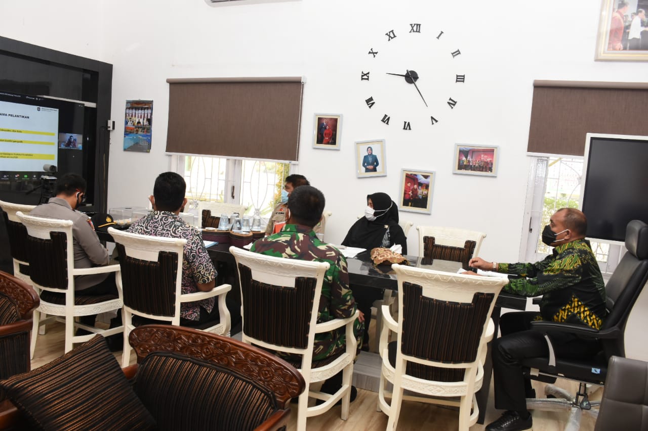 Dalam keterangannya, Plh. Bupati menyampaikan jika koordinasi virtual hari ini beragendakan mekanisme pelaksanaan pelantikan Bupati dan Wakil Bupati/Walikota dan Wakil Walikota terpilih yang rencananya akan dilaksanakan besok, Jumat (26/03/2021).
