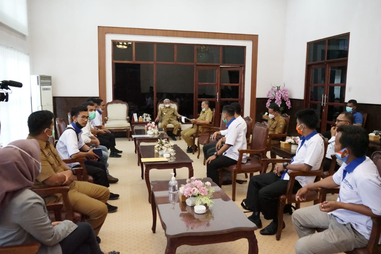 ASAHAN – Bupati Asahan, H Surya BSc didampingi Kadisporapar, Buwono Prawana SIP menerima audensi pengurus Asosiasi Futsal Kabupaten (Afkab) Asahan diruang kerja Bupati, Senin (23/3/2021).