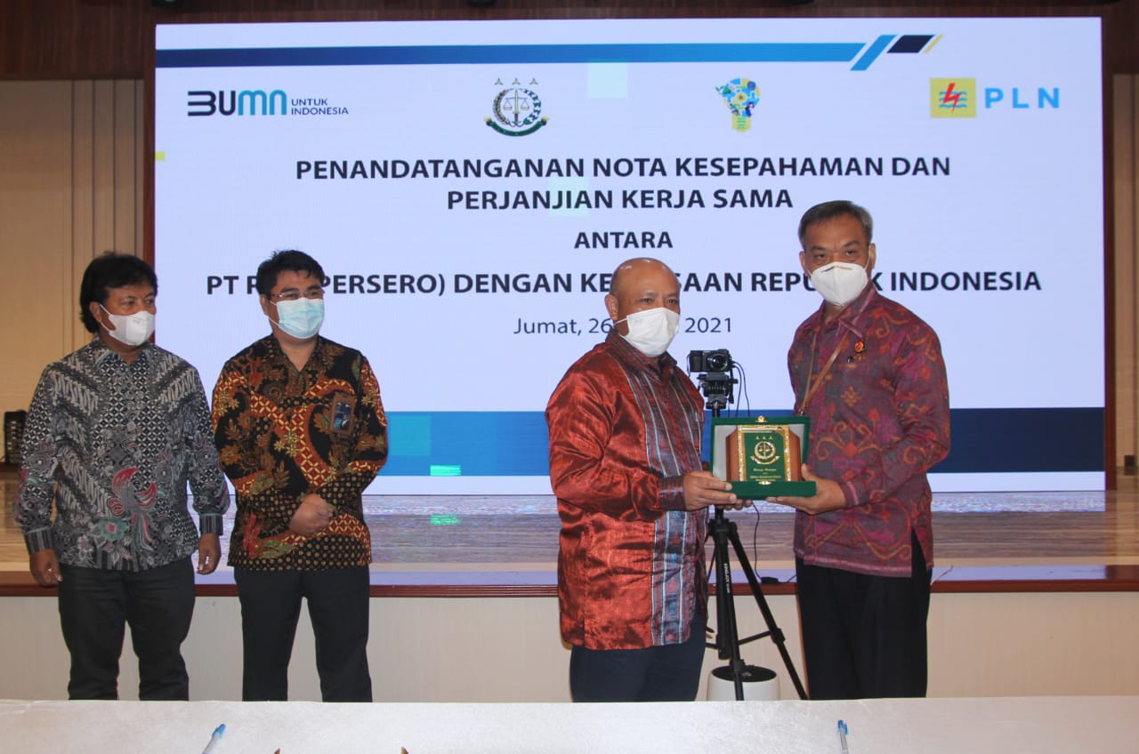MEDAN-Kejaksaan Republik Indonesia jalin kerjasama dan melakukan penandatanganan nota kesepahaman dengan PT PLN (Persero) yang digelar secara Nasional dan diikuti secara daring oleh seluruh Kejaksaan Tinggi di seluruh Indonesia serta PLN Unit Induk Wilayah di seluruh Nusantata, Jumat, (26/3/2021).