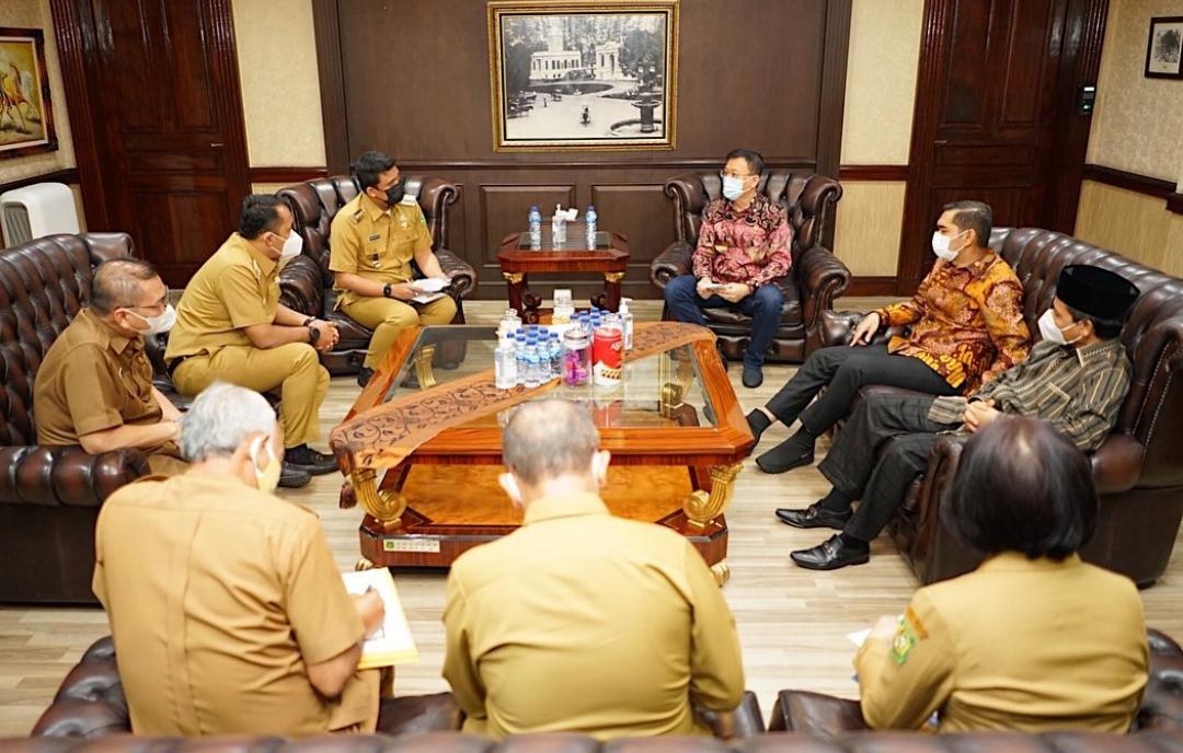 MEDAN – Gaji PHL, Sejumlah pimpinan DPRD Medan menemui Walikota Medan, Bobby Nasution di Balai Kota Medan, Senin (22/3/2021). Ketiga pimpinan DPRD Medan, Hasyim (Ketua), Ihwan Ritonga dan Rajuddin Sagala (wakil ketua) membahas sejumlah hal khususnya terkait pembangunan Kota Medan.