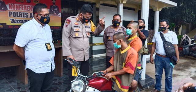“Ini kerjasama Satreskrim Polres Asahan dan Satreskrim Polres Labuhanbatu. Dalam tempo 10 hari kita mampu meringkus 2 pelaku pelemparan kaca dan kita kenakan pasal 170 KUHP “melakukan kekerasan secara bersama-sama dan melakukan pengrusakan orang atau barang” diancam pidana kurungan paling lama 5 tahun 6 bulan. Barang bukti berupa batu dan sepeda motor yang digunakan sudah diamankan”, kata Kapolres.