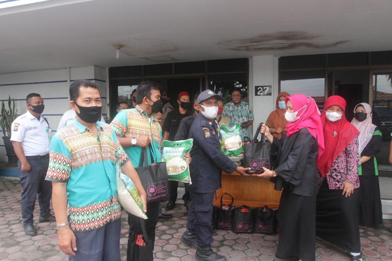 MEDAN – Sebanyak 18 orang petugas kebersihan (cleaning service) dan satpam di kantor Dinas Komunikasi dan Informatika Sumatera Utara, menerima bantuan sembako dari Aliansi Perempuan Peduli Indonesia (ALPPIND) Sumatera Utara (Sumut).