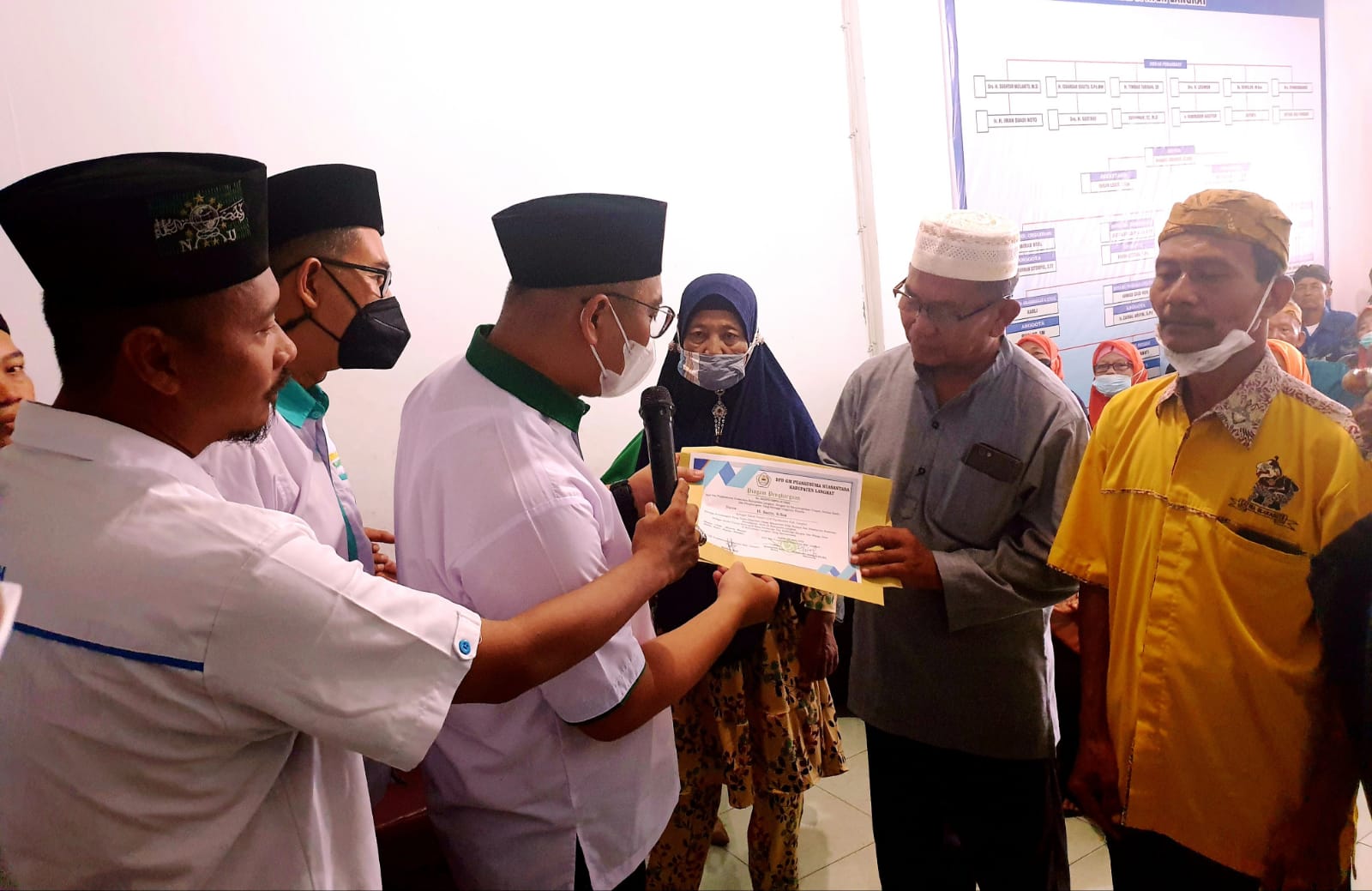 STABAT – Ketua Umum DPN GM Pujakesuma Nusantara Danu Prayitno Siyo, SE, MM bersama Bupati Langkat Syah Afandin, SE berbagi bingkisan dalam rangka Bulan Suci Ramadhan 1443 H, kepada sesepuh GM Pujakesuma Nussntara Langkat, Senin 25/04 di Sekretariat Jln Proklamasi Stabat.
