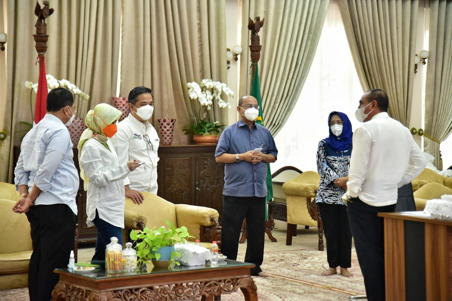 Hadir Kadis Pemberdayaan Masyarakat dan Desa Aspan Sofian, Kadis Komunikasi dan Informatika Irman Oemar, Kepala Badan Pengelolaan Keuangan dan Aset Daerah Ismael Sinaga, Kadis Tenaga Kerja Baharuddin Siagian, Plt Kadis Kesehatan Aris Yudhariansyah, serta tim Satgas Covid-19 Sumut