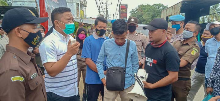 Aksi yang dikawal personil Polres Palas dan Satpol PP meminta kepada Kejari Palas agar memeriksa kepala Disdik dan Manager Bos Afirmasi terkait dugaan korupsi Dana Bos Afirmasi Tahun Anggaran 2019 senilai Rp. 7,6 Milyar.