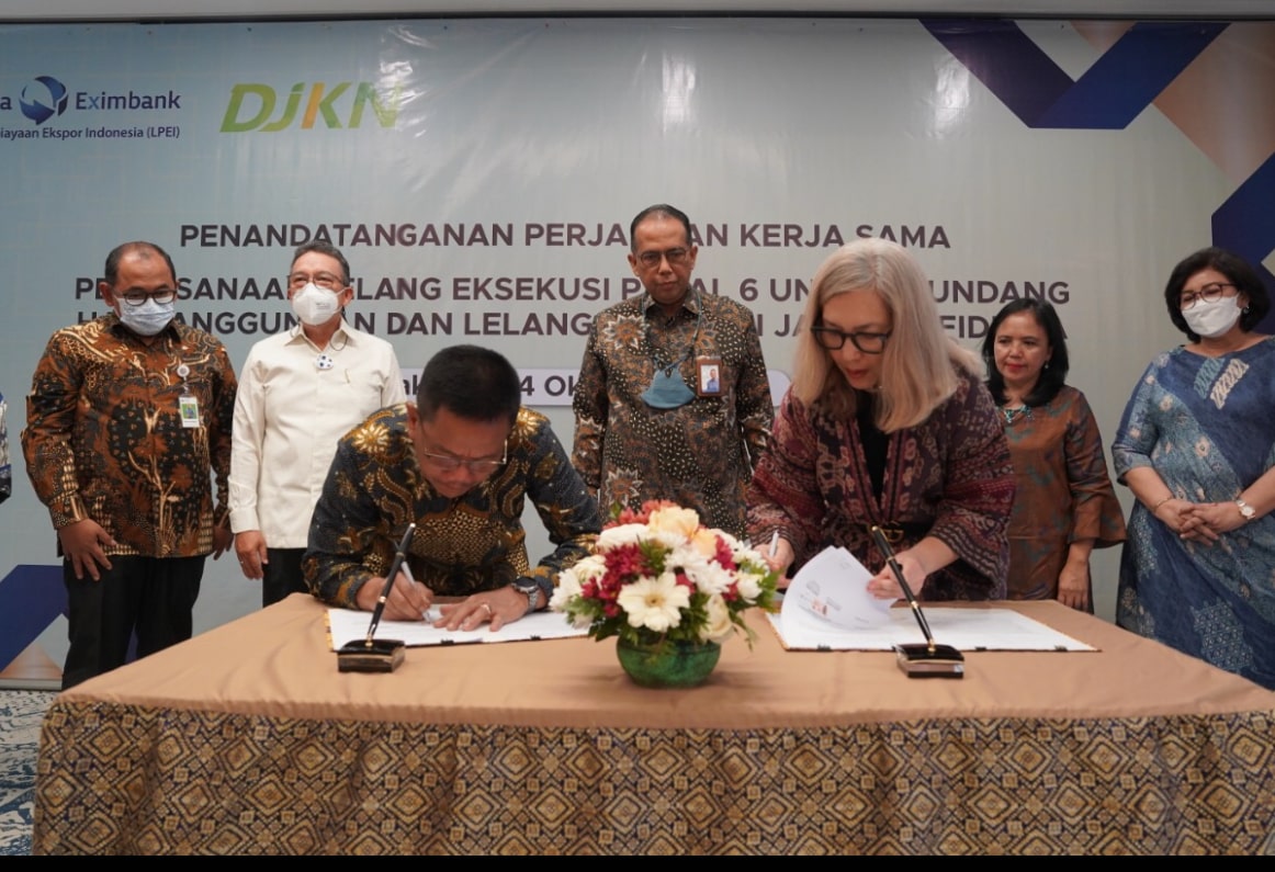 Kolaborasi ini dituangkan dalam penandatanganan Perjanjian Kerjasama antara DJKN dan LPEI tentang pelaksanaan lelang eksekusi pasal 6 undang-undang hak tanggungan dan lelang eksekusi jaminan fidusia. Penandatanganan ini dilakukan di kantor pusat LPEI, Jakarta (24/10).