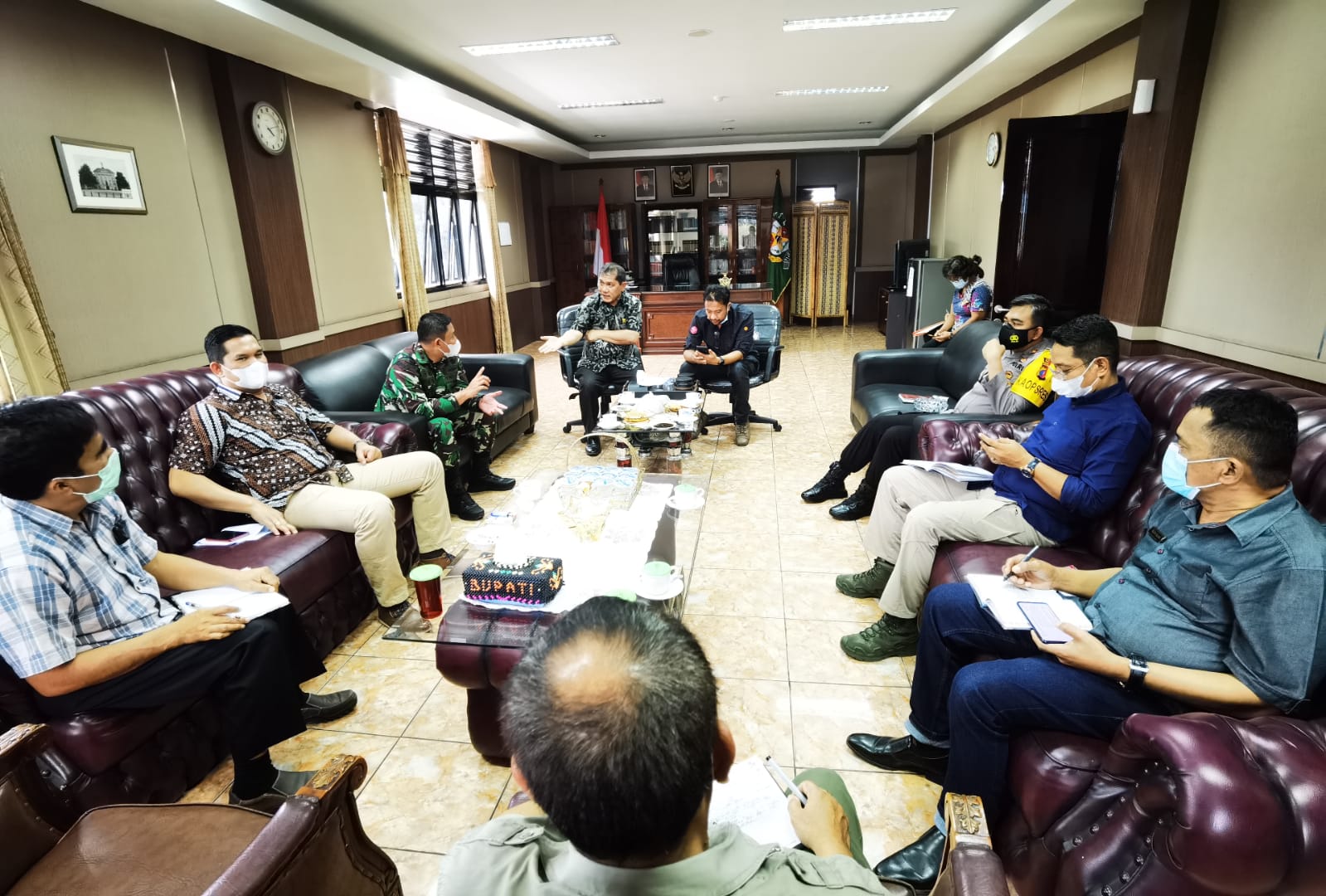TANAH KARO – Bupati Karo Terkelin Brahmana, SH, MH sangat kesal akibat minimnya Kepala OPD (Organisasi Pemerintah Daerah) yang hadir dalam rapat lanjutan pembahasan pembatasan kegiatan masyarakat Covid-19 di Kabupaten Karo, Jumat (21/1/2021). Sehingga orang nomor satu di Karo ini mengancam akan melaporkan OPD yang tidak disiplin ke Inspektorat Sumut.