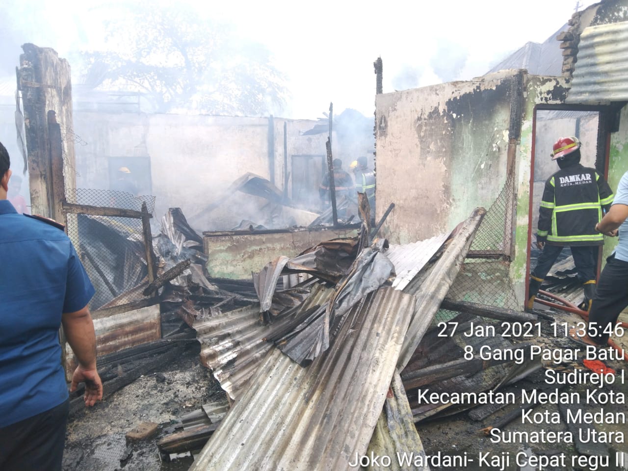 MEDAN – Dua unit rumah di Jalan Sisingamangaraja tepatnya di Gang Sahata, Lingkungan X Kelurahan Sudirejo I, Kecamatan Medan Kota hangus terbakar, pada Rabu (27/1/2021) siang sekitar pukul 11.10 WIB.