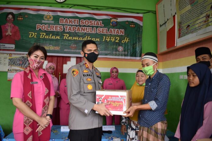 Bakti sosial dipimpin Kapolres Tapanuli Selatan AKBP. Roman Smaradhana, Elhaj, SH,SIK,MH, didampingi Ketua Cabang Bhayangkari Tapanuli Selatan Ny. Pepin Roman Elhaj, Kasat Binmas Polres Tapanuli Selatan AKP. Daulat M. Zein Harahap, Kasat Intelkam AKP. Eldi Koswara, Kasat Lantas AKP. Zaenal Mukhlisin, Kasat Sabhara AKP.Sofyan Helmi Nasution, SH, para personil Pokres Tapanuli Selatan dan pengurus Cabang Bhayangkari Tapanuli Selatan.