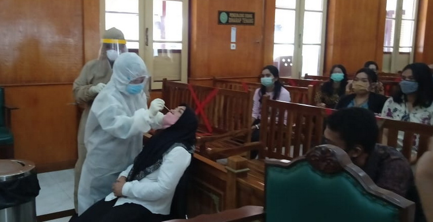 Ruang Sidang Cakra Utama menjadi saksi bisu ketika mereka menjalani test dengan pengambilan sampel darah (rapid) maupun sampel lendir yang diambil dari dalam hidung ataupun tenggorokan (test swap).