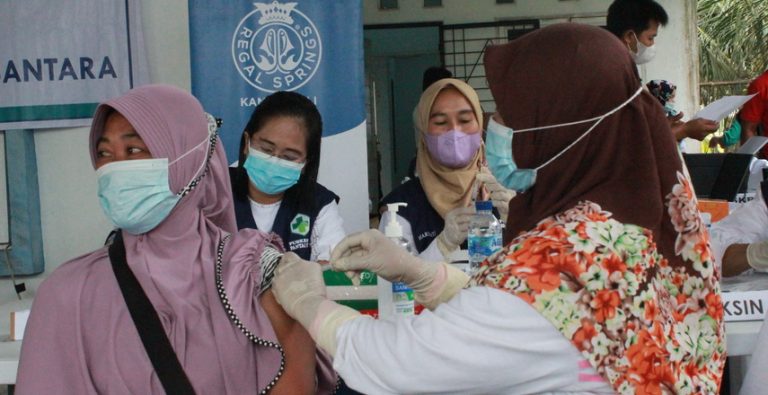 SERGAI – Regal Springs Indonesia (RSI) kembali melanjutkan kemitraannya bersama Komando Daerah Militer (Kodam) I/Bukit Barisan, Komando Distrik Militer (Kodim) 0204/Deli Serdang dan Pemerintah Kabupaten (Pemkab) Serdang Bedagai dalam program Vaksinasi Covid-19 dosis dua untuk 1.000 orang di Pantai Cermin, Serdang Bedagai (Sergai), Sumatera Utara, Jumat (27/8/2021).