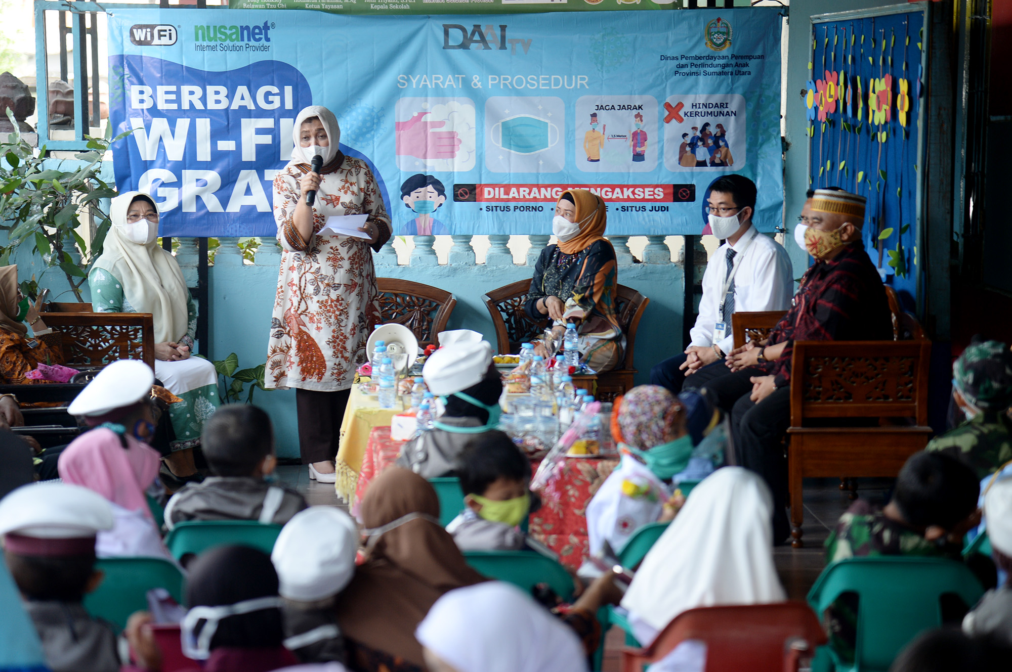 Apresiasi ini disampaikan Nawal yang hadir bersama Wakil Ketua TP PKK Sumut Sri Ayu Mihari Musa Rajekshah pada acara penyerahan program internet gratis DAAI TV dan Nusanet, Kamis (26/11/2020), untuk Yayasan Al Hidayah Tiga Cahaya Langit, Jalan Binjai KM 11,5, Mulia Rejo Sunggal Deli Serdang dan Panti Asuhan Terimakasih Abadi Jalan Danau Semayang Nomor 158 Sei Agul Medan Baru.