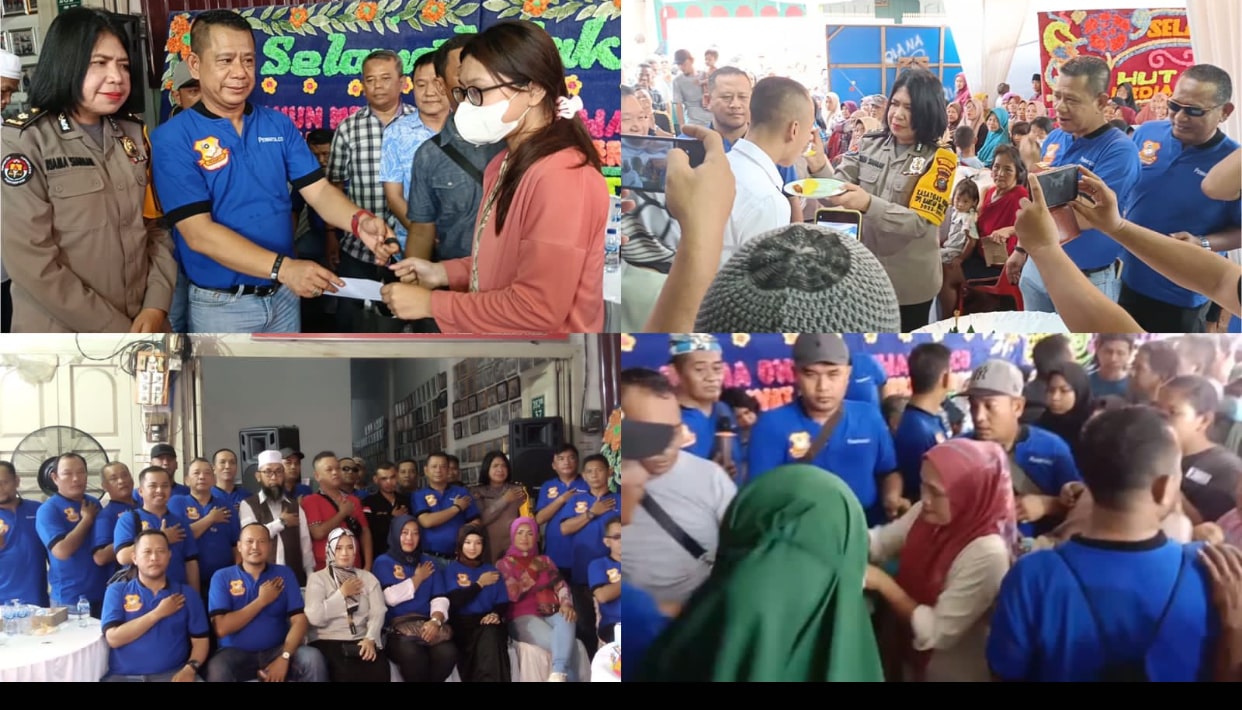 Hari Ulang Tahun (HUT) ke-7 Pewarta.co, pemimpin dan pimpinan redaksi (Pimpred) Pewarta.co, Chairum Lubis,SH berbagi paket Sembako di kantor media online tersebut Jalan Medan Area Selatan, Rabu (27/12/2023).