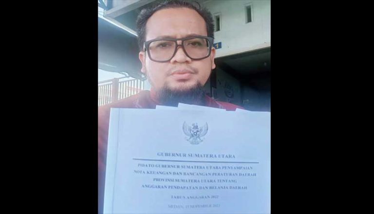 “Oleh karena itu, Saya katakan pidato pengantar penyampaian nota keuangan dan ranperda APBD 2022 oleh Gubsu tertanggal 15/11/2021 lalu terkesan absurd, tidak masuk akal, mengapa sama sekali tak menyebutkan belanja sebesar 2, 7 triliun rupiah ini, yang jika kita ikuti keterangan dari kepala dinas BMBK Sumut, Bambang Pardede, program ini adalah program prioritas untuk memenuhi visi dan misi Gubernur periode ini. Bahkan kepala dinas yang bersangkutan sampai melakukan pertemuan dengan lembaga BPKP Sumatera Utara demi menguatkan bahwa program ini strategis. Tapi kembali lagi, mengapa nilai penting program ini tidak tersebut pada pidato Gubsu?” Ujar Muhri Fauzi Hafiz, menegaskan.