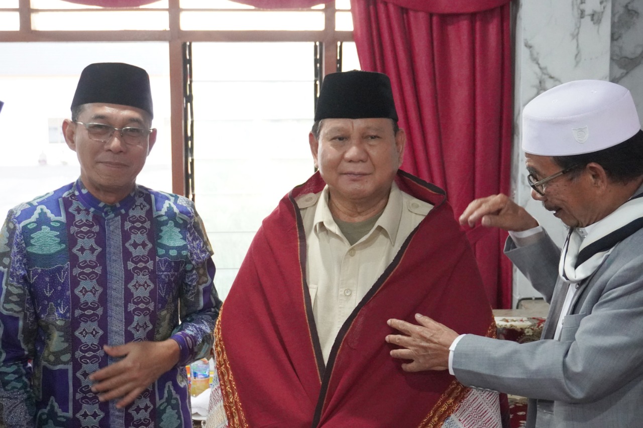 MEDAN-Ketua Umum Partai Gerindra Prabowo Subianto melakukan kunjungan silaturahmi ke pimpinan Pondok Pesantren (Ponpes) Al Kautsar Medan Buya Ali Akbar Marbun, Jumat (27/1/2023).
