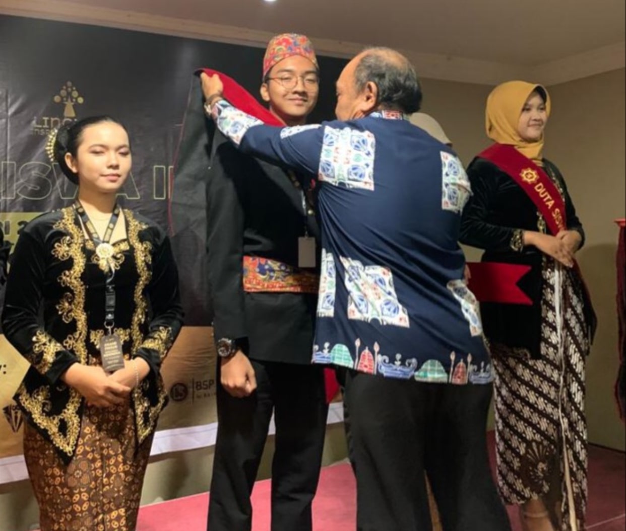 Tidak hanya meresmikan acara pemilihan Duta Siswa Indonesia, Drs. Syaiful Safri, M.M juga ikut andil dalam prosesi penyematan sash kepada seluruh peserta yang dilakukan secara resmi kepada seluruh peserta setiap provinsi.