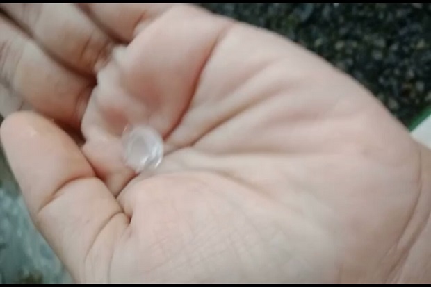 “Seukuran buah Kersen (semacam ceri). Sebentar hujannya juga. Jadi alhamdulillah tidak sampai merusak genteng,” ujarnya.