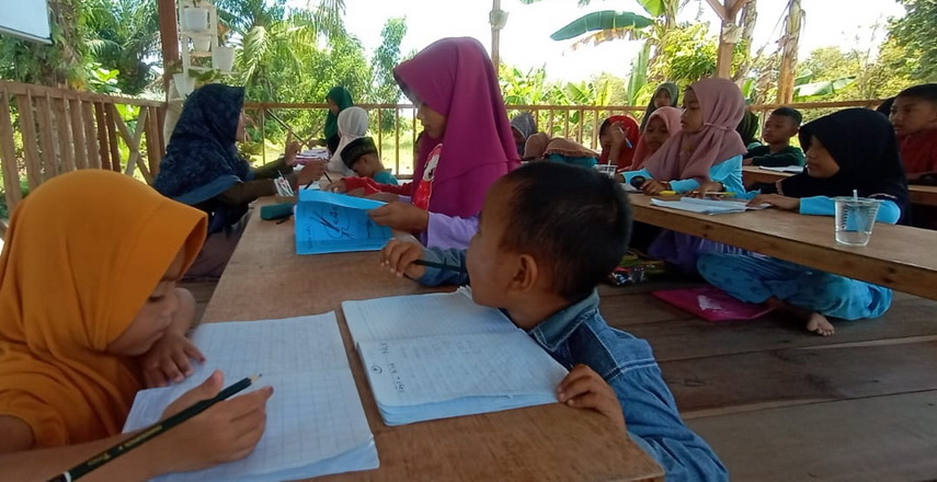 Saung pelatihan belajar anak dari program RSI Kami Peduli (PT Aqua Farm Nusantara) kini aktif digunakan anak-anak desa tersebut, mulai anak TK, SD aktif belajar pendidikan sekolah dasar maupun mengaji.